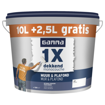 GAMMA latex 1x dekkend muur & plafond wit 10 liter + 2,5 liter