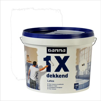 GAMMA latex 1x dekkend wit mat 10 liter is een uitstekend dekkende matte muurverf. Afhankelijk van de kwaliteit van de ondergrond dekt deze verf in één laag. Ook de huidige kleur van de ondergrond heeft invloed of de verf in 1 laag dekt. De verf is geschikt voor het schilderen van alle droge vertrekken binnenshuis en is reinigbaar. Eén emmer van 10 liter volstaat voor het schilderen van een oppervlakte van 100 m2. De muurverf kan worden aangebracht met een kwast en vachtroller en is verkrijgbaar in verschillende wittinten.