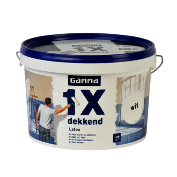GAMMA latex 1x dekkend wit mat 2,5 liter is een uitstekend dekkende matte muurverf. Afhankelijk van de kwaliteit van de ondergrond dekt deze verf in één laag. Ook de huidige kleur van de ondergrond heeft invloed of de verf in 1 laag dekt. De verf is geschikt voor het schilderen van alle droge vertrekken binnenshuis en is reinigbaar. Eén emmer van 2,5 liter volstaat voor het schilderen van een oppervlakte van 25 m2. De muurverf kan worden aangebracht met een kwast en vachtroller en is verkrijgbaar in verschillende wittinten.