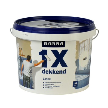GAMMA latex 1x dekkend wit mat 5 liter is een uitstekend dekkende matte muurverf. Afhankelijk van de kwaliteit van de ondergrond dekt deze verf in één laag. Ook de huidige kleur van de ondergrond heeft invloed of de verf in 1 laag dekt. De verf is geschikt voor het schilderen van alle droge vertrekken binnenshuis en is reinigbaar. Eén emmer van 5 liter volstaat voor het schilderen van een oppervlakte van 50 m2. De muurverf kan worden aangebracht met een kwast en vachtroller en is verkrijgbaar in verschillende wittinten.