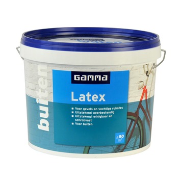 GAMMA latex buiten wit 10 liter is een weersbestendige, uitstekend dekkende, schrobvaste matte muurverf voor het schilderen van gevels en buitenmuren. De latex is ook zeer goed te gebruiken als hoogwaardige, duurzame muurverf voor binnen. Het product is ook geschikt voor gebruik in vochtige ruimtes zoals garages, badkamers en kelders. Eén emmer van 10 liter volstaat voor het schilderen van een oppervlakte van 80 m2. De latex kan worden aangebracht met een kwast en vachtroller.