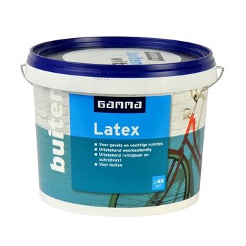 GAMMA latex buiten wit 5 liter is een weersbestendige, uitstekend dekkende, schrobvaste matte muurverf voor het schilderen van gevels en buitenmuren. De latex is ook zeer goed te gebruiken als hoogwaardige, duurzame muurverf voor binnen. Het product is ook geschikt voor gebruik in vochtige ruimtes zoals garages, badkamers en kelders. Eén emmer van 5 liter volstaat voor het schilderen van een oppervlakte van 40 m2. De latex kan worden aangebracht met een kwast en vachtroller.