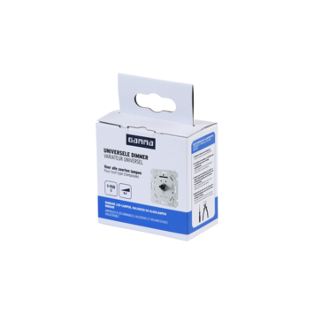 De GAMMA LED dimmer (230VAC/50Hz, 1-150W/VA) met hotelschakeling is een fase-afsnij dimmer (‘R,C’). Dit betekent dat deze dimmer geschikt is om naast dimbare Led, halogeen- en gloeilampen ook elektronische transformatoren en Led drivers te dimmen (mits deze dimbaar zijn en voorzien van de juiste specificaties t.b.v. de toepassing). Door het kunnen instellen van de minimale en maximale stand van de lamp is de dimmer af te stemmen op elke geschikte dimbare led lamp.
