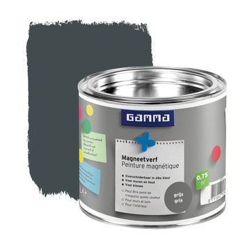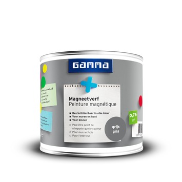 Met GAMMA magneetverf donkergrijs 500 ml maakt u van iedere willekeurige muur of deur een memobord. Door de ijzerdeeltjes in deze verf worden magneten aangetrokken. Voor gebruik goed roeren en in minimaal 3 dikke lagen met een blokborstel of roller aanbrengen. GAMMA magneetverf is eenvoudig overschilderbaar met muurverf of schoolbordverf. Dit product is op waterbasis en daarom geurarm en sneldrogend. Een blik van 500 ml volstaat voor het schilderen van een oppervlakte van 0,75 m2.