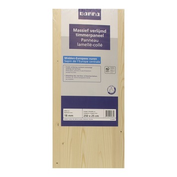 Wil je graag zelf een tafel, boekenplank of misschien wel een raamwerk maken? Dan is GAMMA massief timmerpaneel vuren 250x25cm 18mm het paneel dat je zoekt. Massieve panelen bestaan uit smalle latten die in de fabriek aan elkaar gelijmd zijn, wat ervoor zorgt dat het hout minder snel kromtrekt. Dit paneel is onbehandeld, zodat je hem makkelijk zelf kunt beitsen en aflakken in jouw favoriete kleur. Het hout is bovendien geschaafd, wat betekent dat hij mooi glad is afgewerkt en maatvaster is dan ruw hout. Aan de lange zijde is het paneel afgewerkt met een mooie facetkant - ofwel een schuine kant - en eenvoudig te zagen en te monteren. Vuren is een zachte houtsoort en is relatief goedkoop. Kortom: klus voortaan zelf je meubels in elkaar met dit massief vuren timmerpaneel.