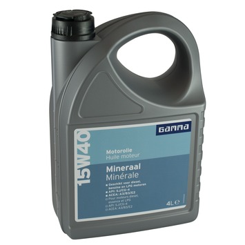 GAMMA motorolie 15W40 is een minerale motorolie op basis van ruwe olie. De motorolie is geschikt voor diesel-, benzine- en lpg-motoren. De olie heeft een viscositeit van 15W40. De motorolie is brandstofbesparend en u koopt hem in een voordelige flacon met een inhoud van 4liter. Wilt u een kleinere verpakking? Bij GAMMA vindt u ook een fles motorolie in dezelfde samenstelling met een inhoud van 1liter.