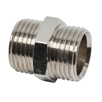Op de afbeelding is een vernikkelde sok 15 zonder wartel en ring te zien. Niet te verwarren met een 1/2" dubbele nippel.
