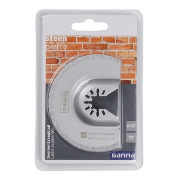Het Gamma RIFF segmentzaagblad met diameter 90mm is uitermate geschikt voor het invallend zagen in steen en keramiek. Het segmentzaagblad is geschikt voor een multitool. Het is belangrijk om tijdens het zagen niet teveel druk uit te oefenen op het zaagblad en de zaag het werk te laten doen.