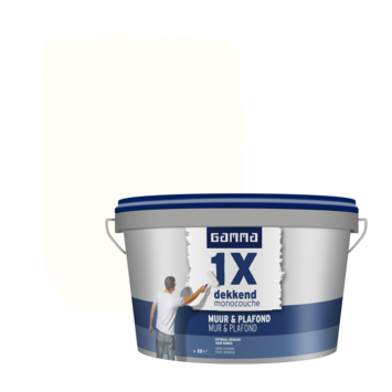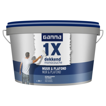 GAMMA 1x dekkend muur & plafond is een optimaal dekkende, afneembare en matte latexverf. Universeel toepasbare muurverf voor muren en plafonds in droge ruimtes binnenshuis zoals woon- en slaapkamer. De verf is watergedragen, ademend en geurarm. Afhankelijk van de kleur en kwaliteit van de ondergrond dekt deze verf in één laag. Is je muur nog onbehandeld? Gebruik dan voorstrijk voor een optimaal resultaat. Deze emmer van 2,5 liter is voldoende voor het schilderen van circa 25 m². Verkrijgbaar in wit, RAL 9010 en RAL 9016.