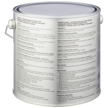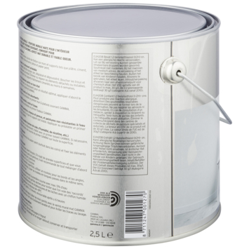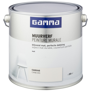 De GAMMA muurverf voor binnenshuis is geschikt voor het schilderen van muren en plafonds. De GAMMA muurverf canvas 2,5 L is een geur arme watergedragen muurverf. Het blik heeft een inhoud van 2,5 liter, dit is voldoende voor een oppervlakte van ongeveer 20 m². Twee uur na het aanbrengen van de verf is deze reeds stofdroog, na 6 uur kan je de volgende laag aanbrengen. De beste temperatuur om met deze verf te werken is tussen de 8 en 25°C. Met zijn uitstekende dekking is de verf zeer geschikt als afwerklaag op verschillende ondergronden, waaronder cement- en pleisterwerk, gipsplaat, glasweefsel, beton en behang.