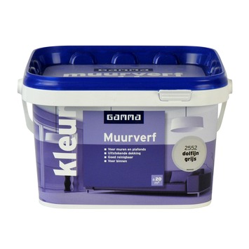 GAMMA muurverf dolfijn grijs 2,5 liter heeft een matte uitstraling en kan worden toegepast in droge ruimtes binnenshuis. De verf heeft een goede dekking en is afwasbaar. Eén emmer van 2,5 liter volstaat voor het schilderen van een oppervlakte van 20 m2. De muurverf kan worden aangebracht met een vachtroller. Naast de standaard beschikbare kleuren is deze verf in meer dan 30.000 verschillende kleuren te verkrijgen bij onze verfmengbalie in de GAMMA bouwmarkt. Met GAMMA muurverf geeft u trendy accenten aan uw woonkamer, hal of slaapkamer.
