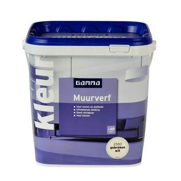 GAMMA muurverf gebroken wit 5 liter heeft een matte uitstraling en kan worden toegepast in droge ruimtes binnenshuis. De verf heeft een goede dekking en is afwasbaar. Eén emmer van 2,5 liter volstaat voor het schilderen van een oppervlakte van 20 m2. De muurverf kan worden aangebracht met een vachtroller. Naast de standaard beschikbare kleuren is deze verf in meer dan 30.000 verschillende kleuren te verkrijgen bij onze verfmengbalie in de GAMMA bouwmarkt. Met GAMMA muurverf geeft u trendy accenten aan uw woonkamer, hal of slaapkamer.