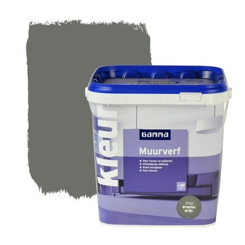 GAMMA muurverf graniet grijs 5 liter heeft een matte uitstraling en kan worden toegepast in droge ruimtes binnenshuis. De verf heeft een goede dekking en is afwasbaar. Eén emmer van 2,5 liter volstaat voor het schilderen van een oppervlakte van 20 m2. De muurverf kan worden aangebracht met een vachtroller. Naast de standaard beschikbare kleuren is deze verf in meer dan 30.000 verschillende kleuren te verkrijgen bij onze verfmengbalie in de GAMMA bouwmarkt. Met GAMMA muurverf geeft u trendy accenten aan uw woonkamer, hal of slaapkamer.