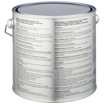 De GAMMA muurverf voor binnenshuis is geschikt voor het schilderen van muren en plafonds. De GAMMA muurverf jade 2,5 L is een geur arme watergedragen muurverf. Het blik heeft een inhoud van 2,5 liter, dit is voldoende voor een oppervlakte van ongeveer 20 m². Twee uur na het aanbrengen van de verf is deze reeds stofdroog, na 6 uur kan je de volgende laag aanbrengen. De beste temperatuur om met deze verf te werken is tussen de 8 en 25°C. Met zijn uitstekende dekking is de verf zeer geschikt als afwerklaag op verschillende ondergronden, waaronder cement- en pleisterwerk, gipsplaat, glasweefsel, beton en behang.