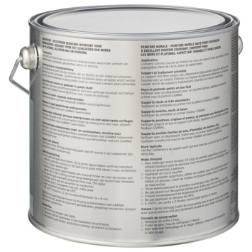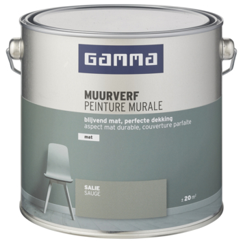 De GAMMA muurverf voor binnenshuis is geschikt voor het schilderen van muren en plafonds. De GAMMA muurverf salie mat 2,5 L is een geur arme watergedragen muurverf. Het blik heeft een inhoud van 2,5 liter, dit is voldoende voor een oppervlakte van ongeveer 20 m². Twee uur na het aanbrengen van de verf is deze reeds stofdroog, na 6 uur kan je de volgende laag aanbrengen. De beste temperatuur om met deze verf te werken is tussen de 8 en 25°C. Met zijn uitstekende dekking is de verf zeer geschikt als afwerklaag op verschillende ondergronden, waaronder cement- en pleisterwerk, gipsplaat, glasweefsel, beton en behang.