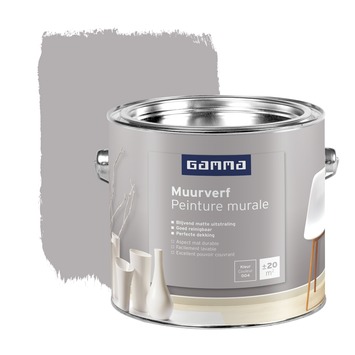 GAMMA muurverf nr. 004 2,5 liter heeft een matte uitstraling en kan worden toegepast in droge ruimtes binnenshuis. De verf heeft een goede dekking en is afwasbaar. Eén emmer van 2,5 liter volstaat voor het schilderen van een oppervlakte van 20 m2. De muurverf kan worden aangebracht met een vachtroller. Met GAMMA muurverf geeft u trendy accenten aan uw woonkamer, hal of slaapkamer. Niet helemaal zeker over de kleur? Koop een GAMMA Kleurtester en probeer het thuis!