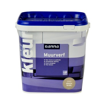GAMMA muurverf mocca bruin 5 liter heeft een matte uitstraling en kan worden toegepast in droge ruimtes binnenshuis. De verf heeft een goede dekking en is afwasbaar. Eén emmer van 2,5 liter volstaat voor het schilderen van een oppervlakte van 20 m2. De muurverf kan worden aangebracht met een vachtroller. Naast de standaard beschikbare kleuren is deze verf in meer dan 30.000 verschillende kleuren te verkrijgen bij onze verfmengbalie in de GAMMA bouwmarkt. Met GAMMA muurverf geeft u trendy accenten aan uw woonkamer, hal of slaapkamer.