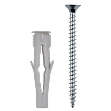 De GAMMA nylonplug Ø 6mm met schroef is voor meerdere materialen te gebruiken De plug is zowel geschikt voor beton, massieve als geperforeerde steen, en ook voor holle wanden. De kop van de plug wordt namelijk door de schroef naar achteren getrokken en vormt in holle bouwmaterialen een soort knoop. Een handige plug dus om op voorraad te hebben, zodat je altijd een geschikte plug in huis hebt. De plug is 35mm lang, voor het beste resultaat adviseren wij een minimale boordiepte te hanteren van 40mm . Een verpakking bevat 10 pluggen met 0 40mm
