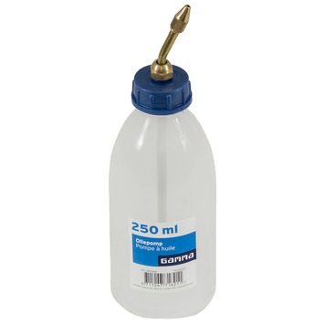 De GAMMA-oliepomp is geschikt voor 250ml smeerolie. De plastic oliepomp heeft een regelbare en afsluitbare nippel. Daarmee kunt u het gebruik van de olie precies afstellen, zodat u geen olie verspilt. Het uitschuifbare mondstuk van de oliepomp is handig om ook moeilijk bereikbare plaatsen te bereiken. De oliepomp met tuit vult u met de universele GAMMA-smeerolie. In totaal past er 250ml smeerolie in de oliepomp die u bijvoorbeeld gebruikt tijdens het smeren van auto-onderdelen.