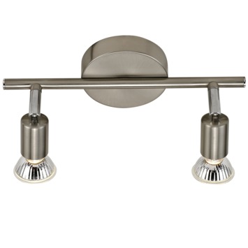 Deze GAMMA opbouwspot Amalfi 2-lichts is een zeer geschikt model om die ene mooie kast te verlichten en tevens een spot te richten op die donkere hoek van de kamer. Deze 2 lichts is een tijdloos model dat door zijn nikkelkleurig design zeer passend is in ieder interieur. Hij is geschikt voor zowel LED als halogeen met een maximuml van 40 Watt. Amalfi is ook uitgevoerd in een 3-lichts model en als enkel spot. Bekijk hiervoor, en de juiste (GU10) lichtbron, ons assortiment.