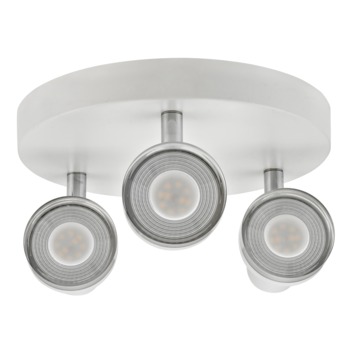 GAMMA opbouwspot Livorno 3-lichts is een eenvoudige stijlvolle lamp in het wit uitgevoerd. Zijn zuinige geïntegreerde LED produceert 3 x 350 lumen, die jouw ruimte verlicht met een warm witte kleur. Zijn koppen zijn gemakkelijk te draaien en kantelen om zo datgene te verlichten wat de aandacht verdient. De Livorno is er één uit een serie, deze lamp is ook te verkrijgen met 2 spotjes en 1 spot. Bekijk hiervoor ons ruime assortiment binnenverlichting.