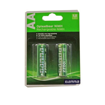 GAMMA oplaadbare batterijen zijn geschikt voor diverse elektrische apparaten waaronder fotoapparatuur, scheerapparaat, zaklamp, alarminstallatie, telefoon, mp3 speler en speelgoed. Oplaadbare batterijen bevatten Nikkel Mtaal Hydride technologie (NiMH). NiMH batterijen kenmerken zich door een hoge opslagcapaciteit en een constant verbruik waardoor de batterijen bijna tot het einde evenveel energie afgeven. Hierdoor zijn GAMMA oplaadbare batterijen uitermate geschikt voor hoge belasting.