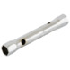 De GAMMA-pijpsleutel met een maat van 18mm en 19mm is handig om moeilijk bereikbare moeren en bouten mee los of vast te schroeven. De sleutelmaten van 18mm en 19mm komen overeen met de metrische maat M12. De pijpsleutel bestaat uit verchroomd staal en past dus op M12-moeren en -bouten. U brengt een passende stift of wringstaaf aan in de gaten van de sleutel en zo draait u met deze stalen pijpsleutel makkelijk diep weggestopte moeren en bouten los of vast. De pijpsleutel met een sleutelwijdte van 18mm en 19mm is dan ook te gebruiken voor moeren en bouten waar u met een andere sleutel niet bij kunt, bijvoorbeeld bougies.
