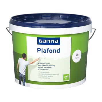 GAMMA plafondverf wit 10 liter is een uitstekend dekkende en goed afwasbare matte plafondverf. Ideaal voor het schilderen van plafonds in de woonkamer, slaapkamer, hal etc. Een plafondverf droogt langzaam waardoor je langer nat-in-nat kunt werken. Dit voorkomt aanzetten en strepen op het plafond omdat je ruimschoots de tijd hebt om aangebrachte oneffenheden in de verflaag te corrigeren. Deze plafondverf is ook geschikt voor het schilderen van muren. De verf is ademend, reukarm en spat weinig. Voor toepassingen binnenshuis.