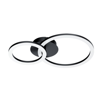 De plafondlamp Malvera van zwart metaal heeft twee ruiten LED verlichtingselementen. Deze lamp is gemaakt van metaal en plastic en afgewerkt in een zwarte kleur. De zwarte afwerking voegt moderniteit toe aan je ruimte. De afmeting van deze lamp is 45,5x30cm.