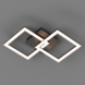 De plafonniere Malvera van zwart metaal heeft twee ruiten LED verlichtingselementen. Deze lamp is gemaakt van metaal en plastic en afgewerkt in een zwarte kleur. De zwarte afwerking voegt moderniteit toe aan je ruimte. De afmeting van deze lamp is 52,2x31cm.