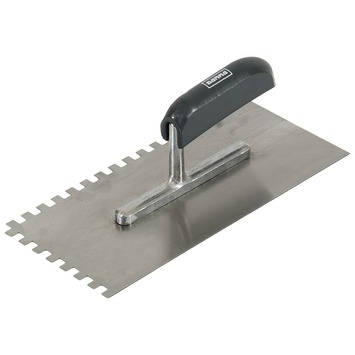 De GAMMA plakspaan is getand en heeft tanden van 8mm bij 8mm. De plakspaan is gemaakt van staal. De plakspaan met tanden is ideaal voor het aanbrengen van bouwlijm. Tijdens het werken met specie en stucmortel gebruikt u de gladde zijde van de pleisterspaan met vertanding. Bijvoorbeeld wanneer u aan de slag gaat met het aanrapen en egaliseren van wanden en vloeren. De 6mm bij 6mm metende tanden van de plakspaan zorgen voor een goede verdeling van lijm. Zoekt u een andere plakspaan? GAMMA heeft ook plakspanen zonder vertanding of plakspanen van andere materialen in het assortiment.