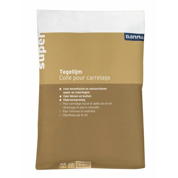 Gamma supertegellijm poeder wit 25 kg is geschikt voor het verlijmen van keramische en natuurstenen wand- en vloertegels op verschillende ondergronden. Gamma Supertegellijm poeder is vochtbestendig nadat deze is verwerkt en uitgehard. Voor toepassingen binnen- en buitenshuis.