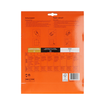 Elk vel is bedrukt op latex papier met geharde korrels zodat het niet snel scheurt en langer zijn schuurkracht houdt. Zo wissel je pas van vel als de korrels écht op zijn en voorkom je dat je halverwege zonder schuurpapier staat. Je knipt eenvoudig een stuk af en buigt het om hoeken of randen, ook op behandeld hout, stuc- of pleisterwerk en metaal.