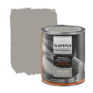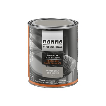 De GAMMA Professional binnenlak 750 ml in de kleur wintergrijs is ideaal voor het langdurig bescherming van hoogwaardig hout binnenshuis zoals ramen, deuren, kozijnen, lambriseringen of zelfs keukenkastjes. Deze hoogglanslak is watergedragen. Hierdoor is het product geurarm en sneldrogend. Tevens is het product speciaal voor u in ieder gewenste kleur te maken in 750 ml op het GAMMA Kleurmengsysteem. Het rendement van één blik van 750 ml is tussen de 10 en 14 m2 en kan worden aangebracht met een kwast of een lakroller. Op onbehandeld hout is het aan te bevelen om eerst GAMMA Professional Grondverf te gebruiken als voorbehandelingsproduct. Daarna volstaan 1 of 2 lagen binnenlak.