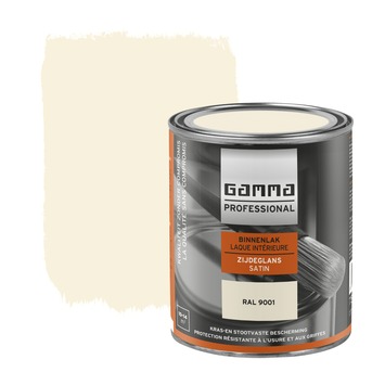 De GAMMA Professional binnenlak 750 ml in de kleur cremewit is ideaal voor het langdurig bescherming van hoogwaardig hout binnenshuis zoals ramen, deuren, kozijnen, lambriseringen of zelfs keukenkastjes. Deze zijdeglanslak is watergedragen. Hierdoor is het product geurarm en sneldrogend. Tevens is het product speciaal voor u in ieder gewenste kleur te maken in 750 ml op het GAMMA Kleurmengsysteem. Het rendement van één blik van 750 ml is tussen de 10 en 14 m2 en kan worden aangebracht met een kwast of een lakroller. Op onbehandeld hout is het aan te bevelen om eerst GAMMA Professional Grondverf te gebruiken als voorbehandelingsproduct. Daarna volstaan 1 of 2 lagen binnenlak.