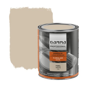 De GAMMA Professional binnenlak 750 ml in de kleur forel is ideaal voor het langdurig bescherming van hoogwaardig hout binnenshuis zoals ramen, deuren, kozijnen, lambriseringen of zelfs keukenkastjes. Deze zijdeglanslak is watergedragen. Hierdoor is het product geurarm en sneldrogend. Tevens is het product speciaal voor u in ieder gewenste kleur te maken in 750 ml op het GAMMA Kleurmengsysteem. Het rendement van één blik van 750 ml is tussen de 10 en 14 m2 en kan worden aangebracht met een kwast of een lakroller. Op onbehandeld hout is het aan te bevelen om eerst GAMMA Professional Grondverf te gebruiken als voorbehandelingsproduct. Daarna volstaan 1 of 2 lagen binnenlak.