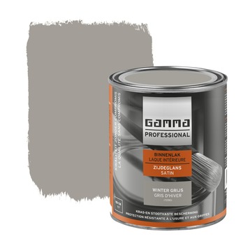 De GAMMA Professional binnenlak 750 ml in de kleur wintergrijs is ideaal voor het langdurig bescherming van hoogwaardig hout binnenshuis zoals ramen, deuren, kozijnen, lambriseringen of zelfs keukenkastjes. Deze zijdeglanslak is watergedragen. Hierdoor is het product geurarm en sneldrogend. Tevens is het product speciaal voor u in ieder gewenste kleur te maken in 750 ml op het GAMMA Kleurmengsysteem. Het rendement van één blik van 750 ml is tussen de 10 en 14 m2 en kan worden aangebracht met een kwast of een lakroller. Op onbehandeld hout is het aan te bevelen om eerst GAMMA Professional Grondverf te gebruiken als voorbehandelingsproduct. Daarna volstaan 1 of 2 lagen binnenlak.