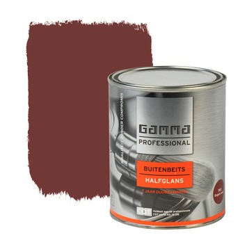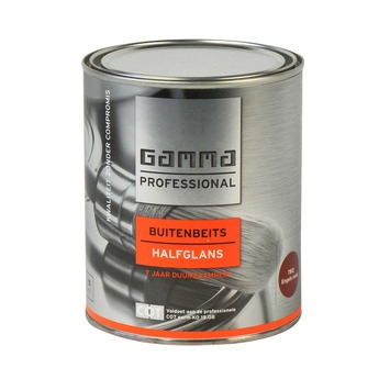 GAMMA Professional buitenbeits engels rood halfglans 1 liter is ideaal voor langdurige bescherming van hoogwaardig hout zoals buitendeuren, buitenkozijnen, daklijsten en gevelbetimmeringen. Door de toevoeging van siliconen en andere zeer hoogwaardige grondstoffen kan een duurzaamheid van 7 jaar worden gegarandeerd. Deze halfglanzende beits is een één-pot-systeem en beschikbaar in diverse populaire dekkende en transparante kleuren. Het product is weersbestendig, waterafstotend, UV-bestendig en vochtregulerend. Het rendement van één blik van 1 liter is ongeveer 15 m2. Op onbehandeld hout is het aan te bevelen om 3 dunne lagen aan te brengen, op hout in goede staat volstaan 2 lagen. Grondverf is niet nodig.