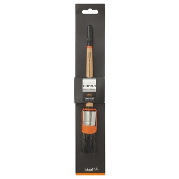 De GAMMA Professional kwast rond voor terpentinegedragen verf maat 14 is een ronde kwast met synthetisch en natuurlijk haar die geschikt is voor verf op terpentine- en oliebasis. De kwast is 14 millimeter breed en daardoor handig voor kleinere oppervlakken en precisiewerk. Je gebruikt deze kwast op gladde en ruwe ondergronden zoals hout, metaal of kunststof. De haren nemen verf goed op vallen niet uit en zorgen voor een gelijkmatige afgifte tijdens het schilderen. De kwast heeft een houten steel en een roestvrijstalen bus waardoor je hem eenvoudig kunt reinigen en opnieuw kunt gebruiken.