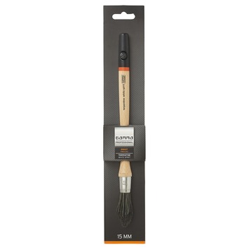 De GAMMA Professional lak puntborstel White Spirit maat 15 rond is een ronde borstel met punt die je gebruikt voor verf op solventbasis. Met een breedte van 15 millimeter is deze borstel geschikt voor detailwerk en het afwerken van kleinere oppervlakken. Je kan hem inzetten op hout, metaal en kunststof op zowel gladde als ruwe ondergronden. De haren bestaan uit een mix van natuurlijk en synthetisch materiaal. Ze nemen de verf goed op en geven die gelijkmatig af waardoor je netjes kan werken met verf op terpentine- of oliebasis. De houten steel ligt stevig in de hand en de bus is gemaakt van roestvrij staal zodat je de borstel opnieuw kan gebruiken.