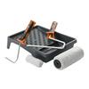 GAMMA Professional muurverfset 5-delig bevat een grote verfbak en twee vachtrollers van 10 cm en 18 cm, elk inclusief stevige beugel. De kunststofvezelvacht neemt muur- en plafondverf op waterbasis soepel op en geeft die gelijkmatig af, zodat je in één streek grote vlakken dekt en met de smalle roller makkelijk rondom hoeken en plinten werkt. Na gebruik spoel je de rollers schoon onder de kraan en berg je alles bij elkaar op. Zo werk je snel door en houd je je klus strak en efficiënt.