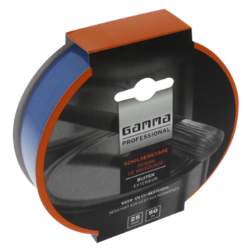 De GAMMA professional schildertape buiten 25 mm x 50 m is een afplaktape geschikt voor effen ondergronden binnen en buiten. Deze blauwe tape is UV- en weerbestendig en geschikt voor verf op waterbasis en terpentinebasis. De drager zorgt voor strakke verfranden en is met de hand afscheurbaar wat het gebruik makkelijk maakt. Met 50 meter lengte plak je ook grotere oppervlakken snel en nauwkeurig af.