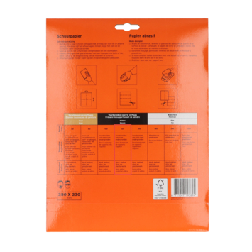 In de verpakking zitten drie vellen die je eenvoudig knipt op maat. Zo buig je het schuurpapier soepel om hoeken en randen. Of je nu werkt op behandeld hout, stuc- of pleisterwerk of metaal, de vellen passen zich aan elke vorm aan.