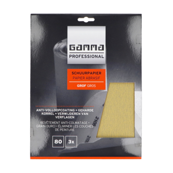GAMMA Professional schuurpapier korrel P80 3 stuks is geschikt om oude verf en lak te verwijderen en zit vast op sterk latex papier met geharde korrels. Met de grove korrel P80 werk je snel roest en hardnekkig pleisterwerk weg. Je voelt direct hoe de ruwheid verdwijnt en het oppervlak weer glad wordt. De vellen buig je om hoeken en randen zodat je geen plek overslaat. Dankzij het latex papier met geharde korrels scheurt het schuurpapier niet snel. Zo behoudt elk vel zijn schuurkracht tot de laatste veeg.