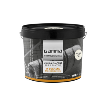GAMMA Professional Muur & Plafond 1x dekkend RAL 9001 10 liter is een professionele topkwaliteit muurverf, die afhankelijk van de kwaliteit en kleur van de ondergrond in één laag dekkend is. De verf is geschikt voor het schilderen van alle droge vertrekken binnenshuis en is schrobvast. Eén emmer van 10 liter volstaat voor het schilderen van een oppervlakte van 100 m2. De muurverf kan worden aangebracht met een kwast en vachtroller. De muurverf is kant en klaar verkrijgbaar in wit, gebroken wit (RAL 9010) en crème wit (RAL 9001) en daarnaast in alle kleuren van het GAMMA kleurmengsysteem.