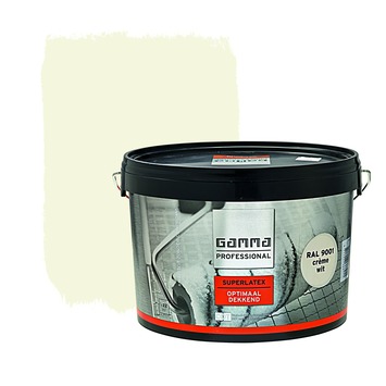 GAMMA Professional superlatex RAL 9001 crème wit 2,5 liter is een uitstekend dekkende, matte en schrobvaste latexverf. De verf is geschikt voor het schilderen van muren en plafonds, buitengevels en -muren en kan ook toegepast worden in vochtige ruimtes zoals garages, kelders, keukens en badkamers. Door de toevoeging van zeer hoogwaardige grondstoffen is de latexverf uiterst duurzaam en weerbestendig. De inhoudsmaat is 2,5 liter en dit volstaat voor het schilderen van een oppervlakte van 22,5 m2.