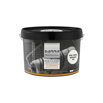 GAMMA Professional Muur & Plafond 1x dekkend RAL 9010 2.5 liter is een professionele topkwaliteit muurverf, die afhankelijk van de kwaliteit en kleur van de ondergrond in één laag dekkend is. De verf is geschikt voor het schilderen van alle droge vertrekken binnenshuis en is schrobvast. Eén emmer van 2.5 liter volstaat voor het schilderen van een oppervlakte van 25 m2. De muurverf kan worden aangebracht met een kwast en vachtroller. De muurverf is kant en klaar verkrijgbaar in wit, gebroken wit (RAL 9010) en crème wit (RAL 9001) en daarnaast in alle kleuren van het GAMMA kleurmengsysteem.