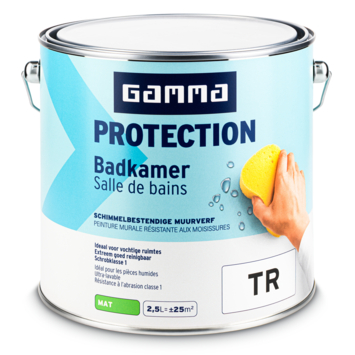 Met GAMMA Protection badkamer mengbare muurverf mat 2,5 liter geef je badkamermuren extra bescherming met een speciaal door GAMMA ontwikkelde Protection technologie. Deze technologie vormt een beschermende en schimmelwerende laag. Dat helpt om muren netjes te houden in een ruimte waar vocht en condens dagelijks voorkomen.