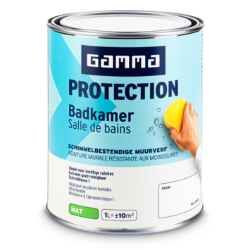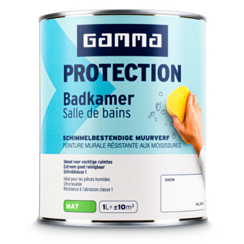 Met GAMMA Protection badkamer muurverf snow RAL 9003 mat 1 liter geef je badkamermuren extra bescherming met een speciaal door GAMMA ontwikkelde Protection technologie. Deze technologie vormt een beschermende en schimmelwerende laag. Dat helpt om muren netjes te houden in een ruimte waar vocht en condens dagelijks voorkomen.