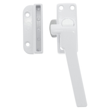 Met de GAMMA raamsluiting kun je gemakkelijk een naar buiten draaiend raam afsluiten. Deze raamsluiting is geschikt voor naar rechts draaiende ramen en door de drukknop is de raamboom extra stevig vergrendeld. Tevens beschikt deze raamsluiting over een nok zodat het raam veilig op de ventilatiestand gezet kan worden. Deze raamsluiting is gemaakt van een stevige metaallegering (zamak) waardoor deze extra stevig is. De raamboom wordt geleverd inclusief de bijbehorende sluitplaat. De kleur van de raamsluiting is wit.